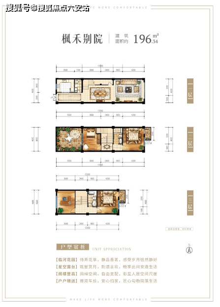 总价优势:建面约196㎡户型总价298万起,单价低至1.65万/㎡,仅为市区同面积住宅的1/3。