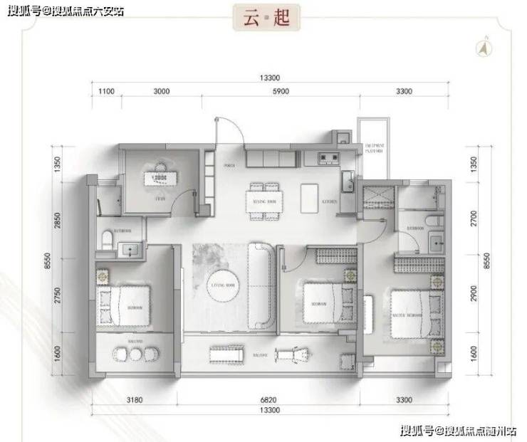 保利·西源赋的主力户型为125㎡、139㎡、168㎡的高层四房和230-310㎡的叠墅产品。125㎡户型为四室两厅两卫全明户型,U型厨房设计;139㎡户型为四室两厅两卫,南北通透,LDK一体化设计,主卧带独立衣帽间和明卫;168㎡户型为五室两厅三卫的楼王产品,南北双阳台,中西双厨设计。