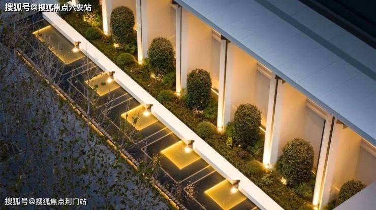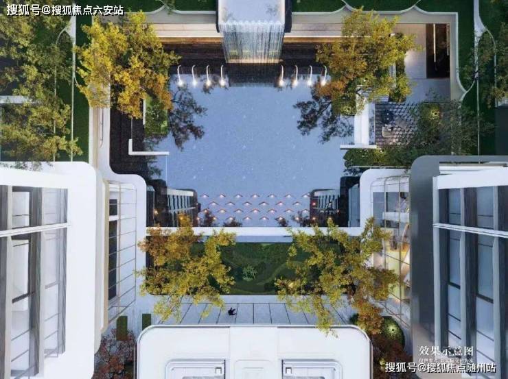 再看约1200方下沉庭院,叠水成瀑,区别于市面上大部分楼盘的“坑洞感”,形成上下两个平行空间的双层滨水度假系统,一看就很赞。