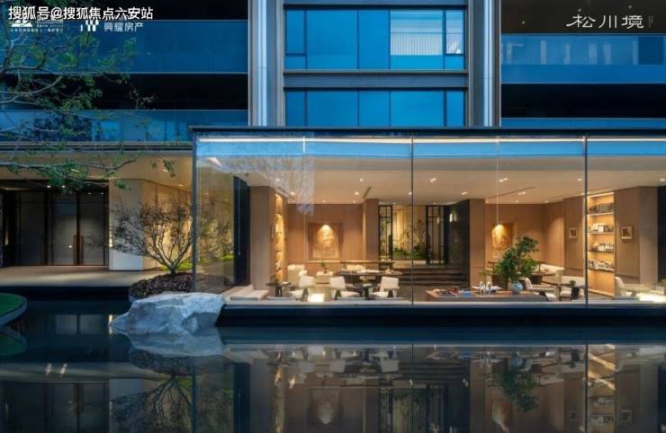 会所庭院以建筑为框,引泉植松,奢造约7米高溪山流瀑,特选6棵造型黑松。将二维的《溪山行旅图》转译为一幅“幽深与静谧、壮丽与宁静”的立体山水画卷。