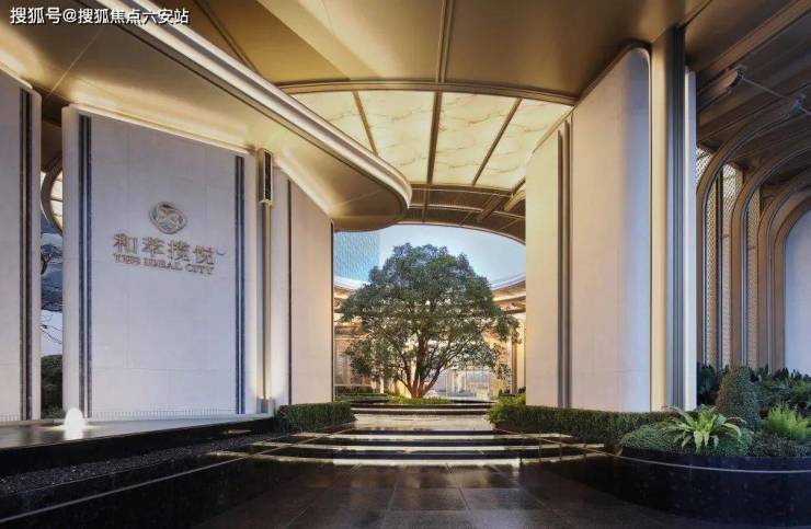 【美学立面】和萃揽悦园立面依然是一眼绿城的风格,采用铝板加大面积玻璃的设计,以金色为主调,演绎华贵风采,展现非凡尊贵与稳重气度。