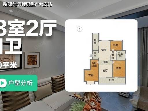 125㎡|3 房 2 厅 2 卫:阔绰三房,南北通透,双阳台设计
