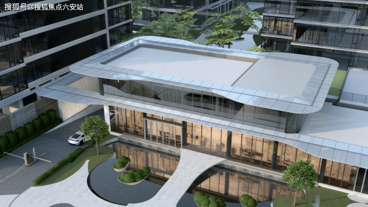 整个园区以围合式布局展开,七幢建筑借鉴中国古典园林的精髓,最大楼间距达到了63米,使得每栋楼都能享受到270°的开阔视野,仿佛是一座座隐匿于花园中的岛屿。为了与景观相呼应,园区立面采用“水晶天幕”设计,线条纤细,使建筑宛如天空中垂下的纯净湖面。