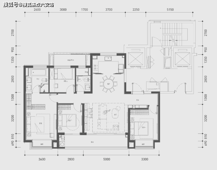再来看148㎡的户型,体验感几乎与180㎡的大平层打平,断层领先。