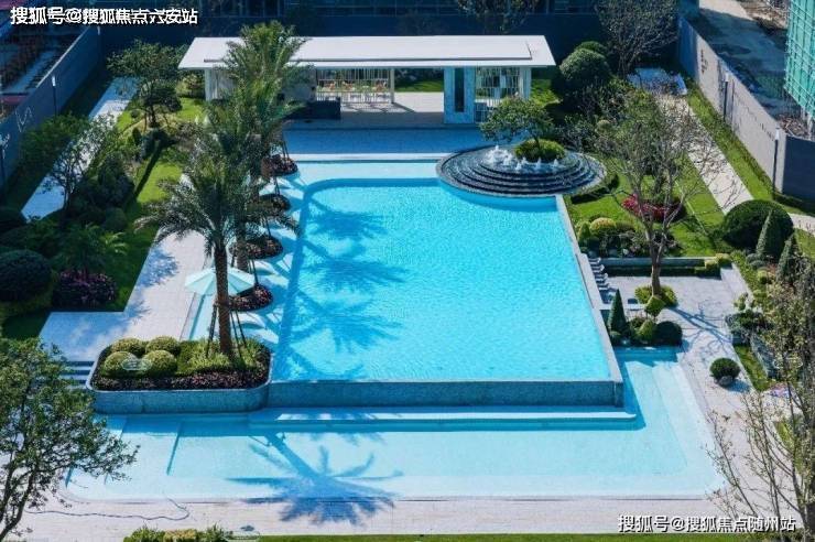 大量的玻璃幕墙+局部铝板等建筑元素的恰当组合,低密的纯洋房大盘在园区中央打造了颠覆性的“六翠之境”:目之所及是一片通透的蒂芙尼蓝,镜面泳池里波光粼粼,倒映着蓝天白云,是真正的“天空之镜”,与边上高大的棕榈树、白色的躺椅、繁茂的绿茵,彼此映衬,海边度假风油然而生。