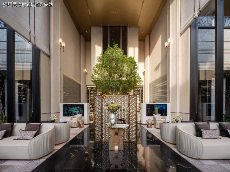 当晨光穿透玉湖的薄雾,中建・玉湖之星的铝板立面开始折射出金属与自然的对话。设计师以水纹玻璃砖墙为媒介,将湖光的潋滟引入约5.5米的挑高厅堂,古铜金属装饰的线条如同涟漪的具象化表达。这种对光影的极致追求,让建筑本身成为湖居精神的容器——既承载着良渚文明对水的崇拜,又回应着现代人对诗意栖居的渴望。