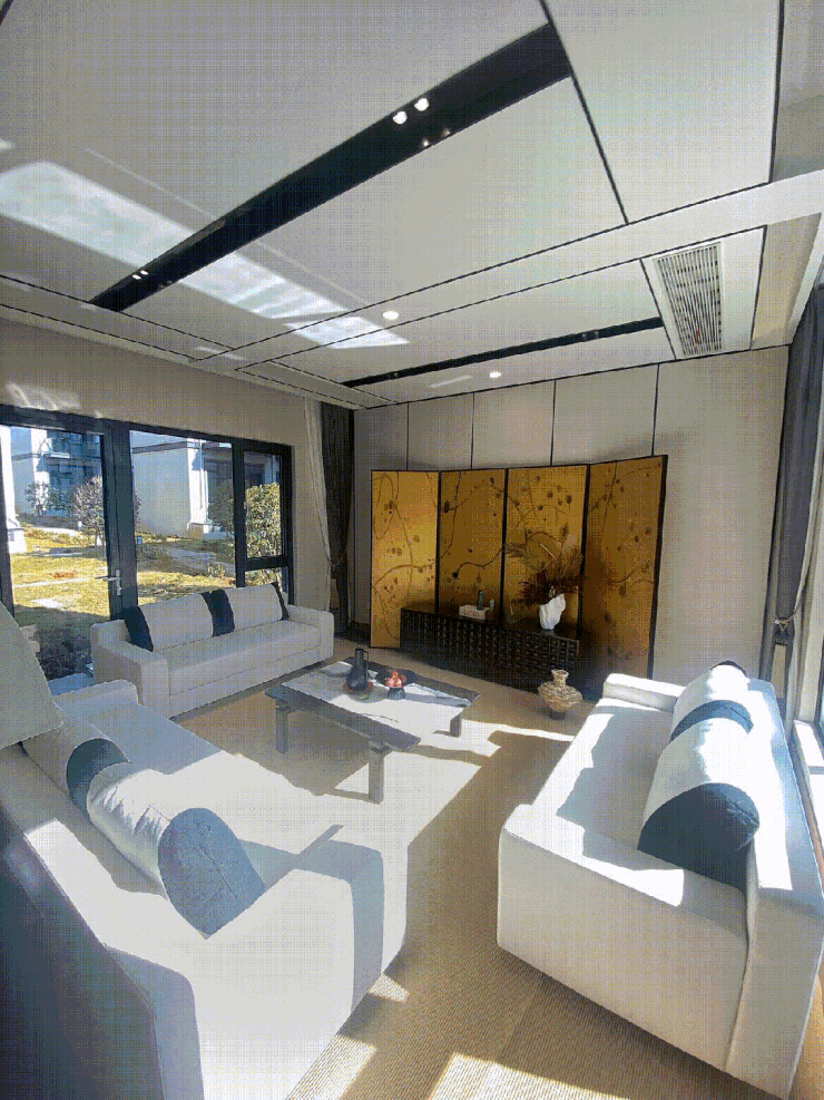 作为归家第一步,每一个细微之处,皆流露着理想生活的表达。朗阔客厅,270°收藏四季院景,安然卸下生活的疲惫。