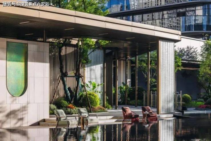 第一重奢阔门厅,巍峨门庭,中轴对称建筑徐徐开篇,中心凌云松迎宾,青松遒劲,气势恢宏;第二重超五星级大堂,近6米高的大堂,整个墙面运用香格里拉酒店专用的黑荒料奢石,碧潭金沙的地面。