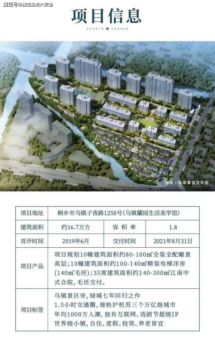 绿城·乌镇兰园位于桐乡市乌镇子夜东路颐养板块核心,距离东栅景区1.5公里,距离西栅景区3公里。乌镇蘭园业主享乌镇景区十年免费畅游。