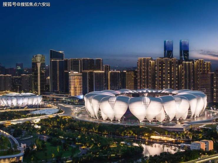 杭州奥体博览城区块,这里聚集着G20峰会会场、2022年亚运会“莲花”主体育馆、杭州之门双塔等。是目前仅次于鸟巢体育馆,全国第二大可容纳8万人以上的体育场。
