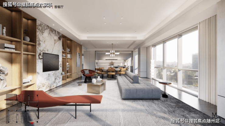 整个客餐厅空间约60㎡!轻松承载各类生活场景,你随时可以做一场私宴,邀请你的合作伙伴一起晚餐;也可以邀请众多家族亲友沟通感情。