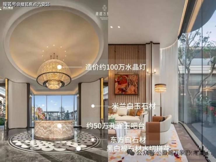 归家门头:约37米进深,曲面波浪造型,造价约800万。两侧景墙用的贝金米黄大理石。