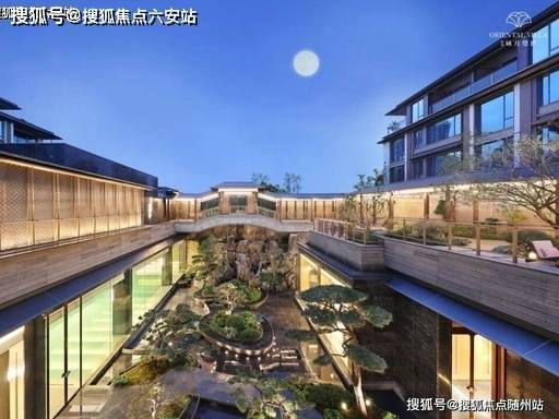 大师宋淑华设计,“月水” 主题,六重归家礼序、风雨连廊、月洞门、枯山水、下沉庭院,35% 高绿地率。