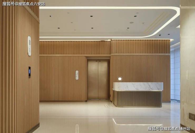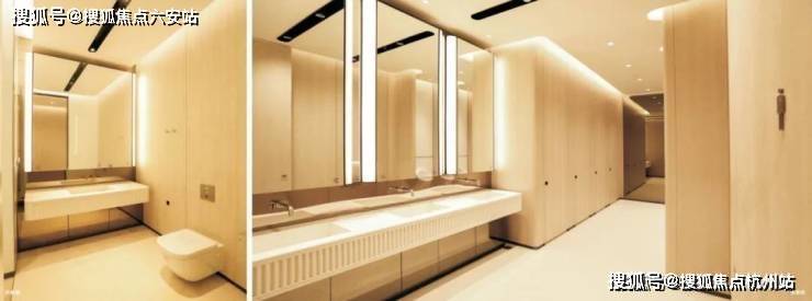 普通超甲级写字楼大堂挑高也就10米,而EIC奢侈地达到了约18米。8部迅达电梯,速度达到7米/秒,远超普通的3-4米/秒,轿厢高度3.6米也远超普通2.7米标准。公区设计时尚,标准极高,橙色波浪纹木饰面通铺到顶,简洁明亮。