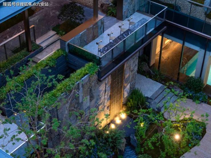 第二:整体布局有“仪式感”,现代审美与高级生活呼应。第一眼,近80米超大尺度主入口,以意大利普拉达绿奢石为基座,镶嵌千年罗汉松阵列,形成威严的森系迎宾序列,门庭的恢弘气场扑面而来。