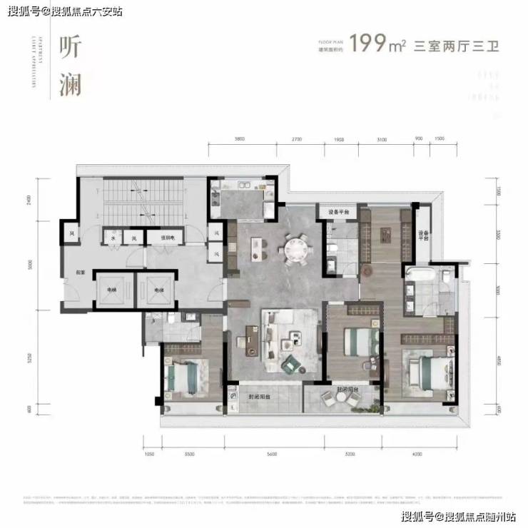 更难得的是,项目在268和199户型中都打造了LDKB餐客厅厨房一体化空间,剧院式社交场域打破了传统思维的限制,中西双厨的自由转换、派对聚会与休闲观景的双重享受,凸显了空间的尺度感。「阳光平权」的设计,让每位家人都能享受暖煦的阳光。