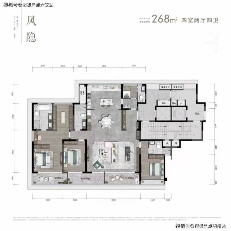 户型面积上的飞跃,更意味着生活尺度上的进阶。凤栖春澜建面约268㎡的“凤隐”户型中,超14m的餐客厅空间,超80㎡社交场域,尺度达到了一座普通住宅的三居室大小。
