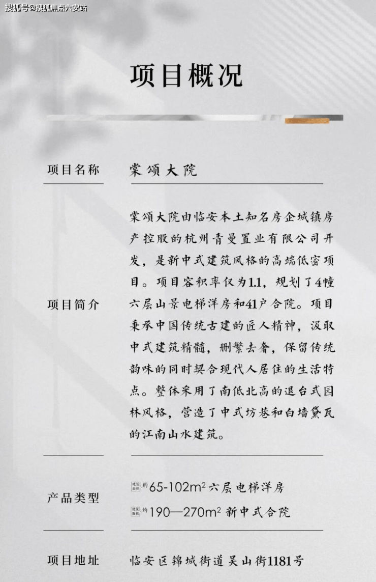 在临安多个项目暴雷烂尾的当下,棠颂大院的圆满交付也充分证明了本地房企的实力和对业主承诺的担当。目前尚有少量合院和洋房现房在售,所见即所得,详询现场销售中心。