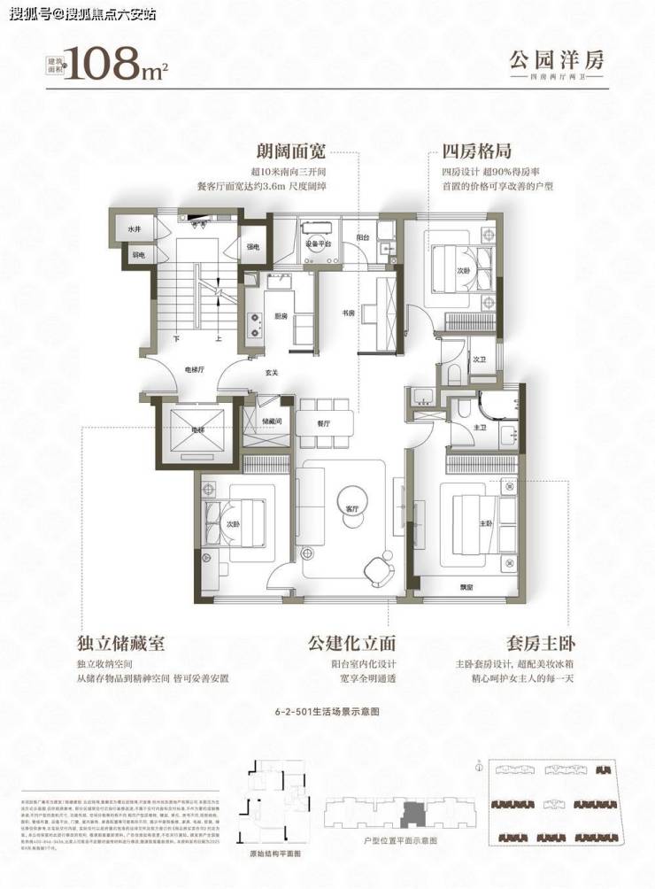 1️⃣洋房108方,实际得房率超90%‼️