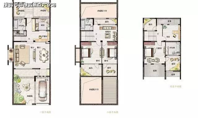 D户型:256平,4室3厅4卫,面宽8米,层高3.6-3.3-3.1米,送前,中,后庭院,露台达140平,3房朝南,采光充足,总价220万起