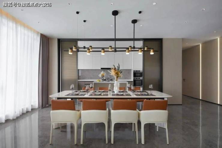 室内拥有独立的玄关,与步入式的衣帽间;玄关液态金属板造型,与立面高级烤漆木饰面,尊贵精致;客餐厅,运用了洄游空间的设计手法;25平米的超大厨房;超3米的挑高空间;