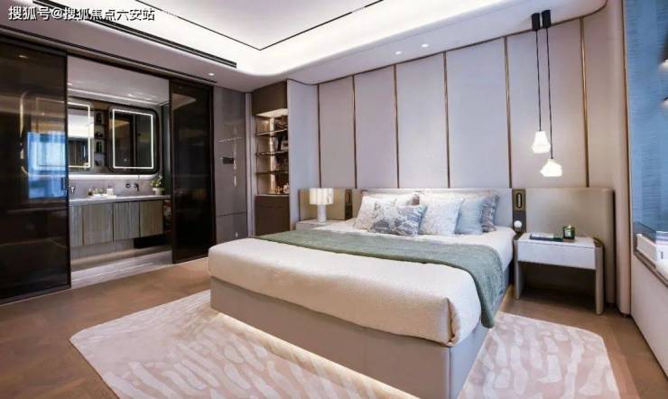 主卧套房格局尽显尊崇,为业主打造了一个静谧奢享的私属天地。观景飘窗让业主在闲暇时光可以坐在窗前,品一杯香茗,读一本好书,欣赏窗外的美景;步入式衣帽间(预留)为业主提供了充足的衣物收纳空间,让衣物整齐有序,彰显品质生活;独立卫浴系统则保证了业主的私密性和舒适性,让每一次沐浴都成为一场身心的享受。