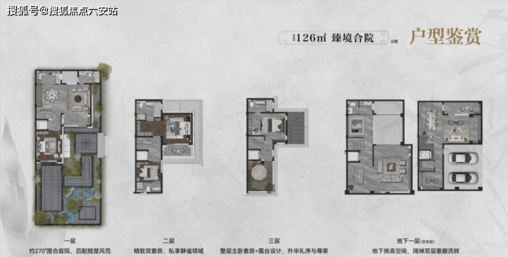 一层:院厅共生——客厅、餐厅、庭院无缝衔接,老人套房推窗即景,实现“莳花弄草,躺椅听风”的颐养场景36;