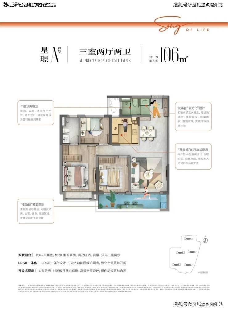 约106㎡户型点评:双联阳台约6.7米面宽,加设L型俯景面,满足晾晒、赏景、采光三重需求,LDKB一体化设计,打破各功能区域的隔离,整个空间更加开阔,开放式厨房 U型厨房,封闭敞开随心切换,高效台面设计,操作动线更加合理杭州萧山区◆市区小高层◆崇璟和颂府🔻售楼热线:☎ 400 832 8823「售楼处」☎〢网上售楼中心〢🔻