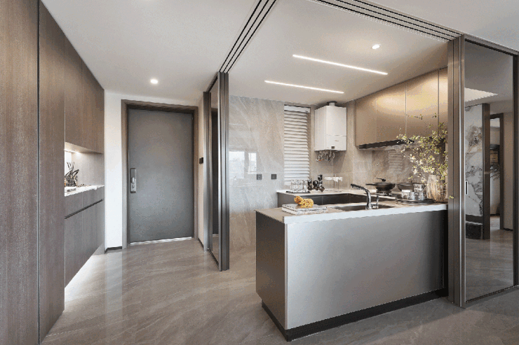 LDKB一体化的设计,再加上开放式厨房,整个公区更加阔绰、大气,也占据了整个户型约1/3的面积。对于年轻人来说,请朋友来家里开Home Party、聚餐等,空间都绰绰有余。而且,即便是和家人相处,一体化的空间也让大家的交流不再有障碍,让爱更亲近。