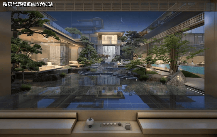 漫步于光影交织的幽静庭院,您将踏入一方充满诗意的天地。潺潺流水映照着婆娑树影,挺拔树姿为这片空间注入向上的生机,纵向延伸出无限的视觉张力。这座下沉庭院,不仅拉近了建筑与自然的情感共鸣,更使室内与景观紧密相连、和谐相融。每一扇窗户,都犹如框中的一幅生动山水画。