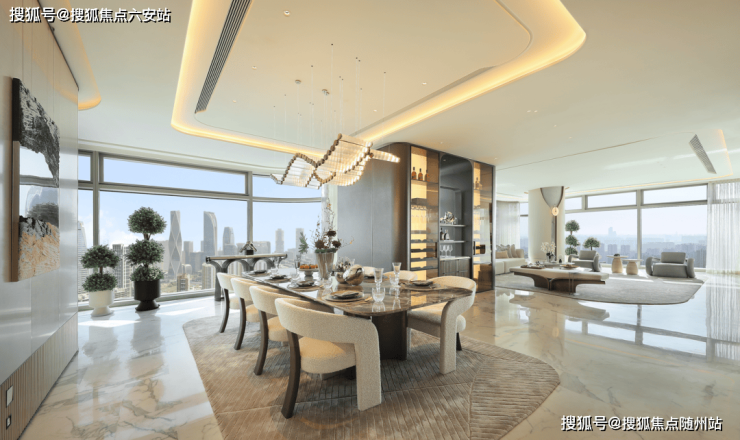 室内设计由HWCD团队定制,融合Art Deco风格与东方禅意。景观设计则由AECOM规划中央景观轴,打造都市森居体验。项目还注重细节的精致打磨,如雨中的“梦露裙摆式”大雨棚,将科技与美学完美结合。这些顶尖设计团队的汇聚,确保了项目从宏观到微观的每一个细节都达到国际一流水准。