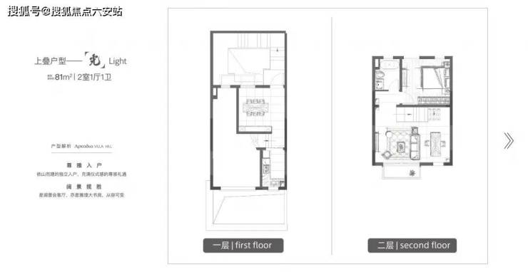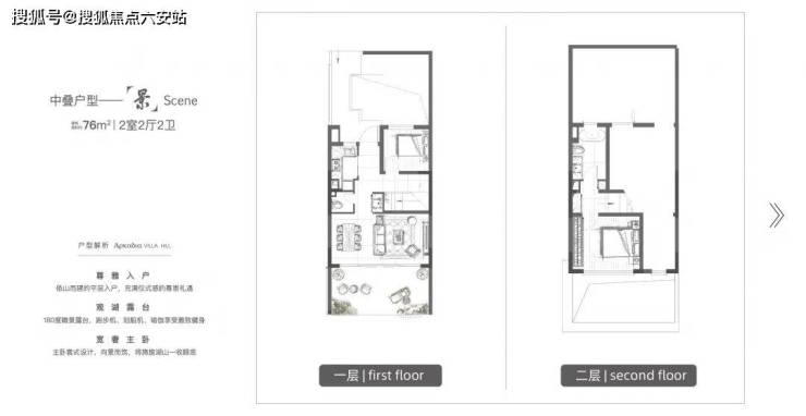 建面约81m²两室一厅一卫上叠,打造湖景客厅、主卧,以及可变空间,将实用度与舒适感平衡得恰到好处,亦设计有屋顶露台,是众多度假型、艺术工作者的心动选项;建面约76m²两室两厅两卫中叠,打造主卧套房,安静私密,并带有花园露台,带来舒适颐养的生活方式,非常适合老年客户居住。