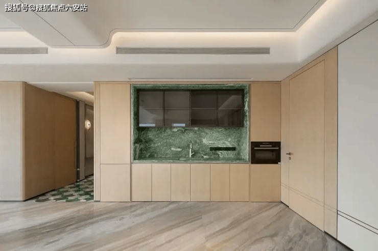 推开“翠境雅奢”的大门,仿佛踏入了一个云端剧场。百达翡翠奢石台面如龙井茶山的青绿,每一道纹理都仿佛在诉说着自然的故事。嘉格纳升降厨电与隐藏式智能酒柜,将烹饪升华为行为艺术。