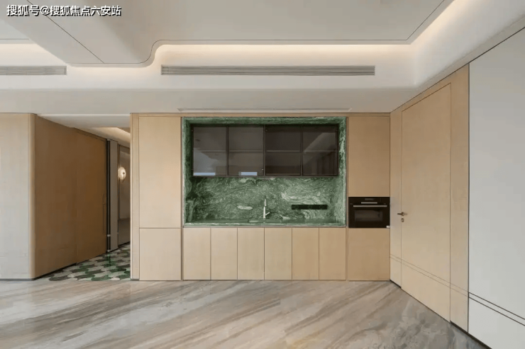 推开“翠境雅奢”的大门,仿佛踏入了一个云端剧场。百达翡翠奢石台面如龙井茶山的青绿,每一道纹理都仿佛在诉说着自然的故事。嘉格纳升降厨电与隐藏式智能酒柜,将烹饪升华为行为艺术。