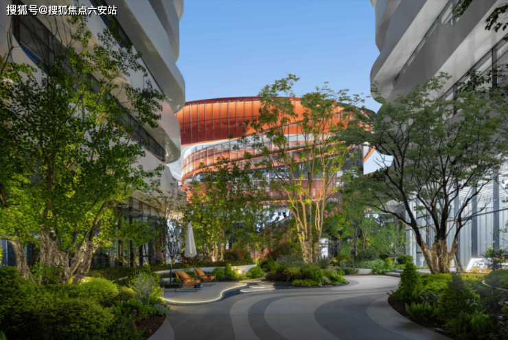 园区精心打造2.5万㎡中央园林,种植香樟、樱花等乔木,形成“四季有景”的景观轴线。创新性地采用“屋顶花园+梯田V谷”的五重立体景观设计,重构办公生态。
