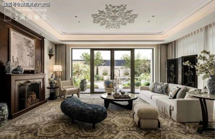 景观设计由大师宋淑华执笔,以法式古典主义园林为骨架,融入西湖郭庄的宋韵意境。园区以中轴景观序列展开,入口处打造约43米宽景观轴线,设置熔铜艺术雕塑、叠石飞瀑等节点,并移植名贵树种,形成“湖—园—宅”交融的绿界。