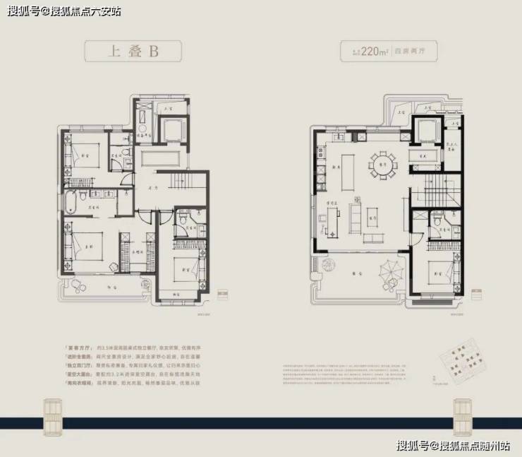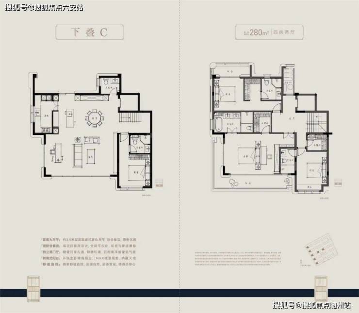 户型方面,主力建面约210-280㎡四层叠墅,采用全套房设计,朝南大开间阳光满堂,主卧“小家化”,步入式衣帽间和独立卫浴间兼备,更大尺度的面积,更开阔的家庭社交区,更舒适的套房空间。