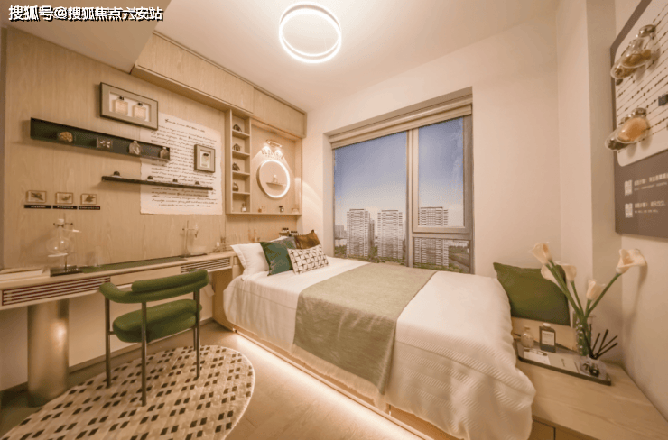 主卧约24㎡套房设计,南向飘窗纳入室内,定制L型转角衣柜(按季节/材质/颜色分区收纳);搭配MINI吧、化妆台,私属卫浴干湿分离,泡澡观景互不干扰。