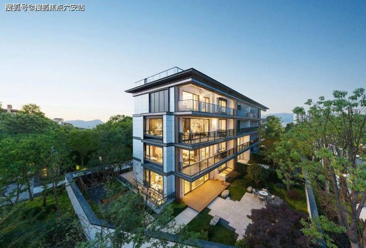 杭州大华春山隐树院,极简的建筑线条,大面积的通透玻璃,配合“油画框”式的设计元素,完全是现代主义美学。