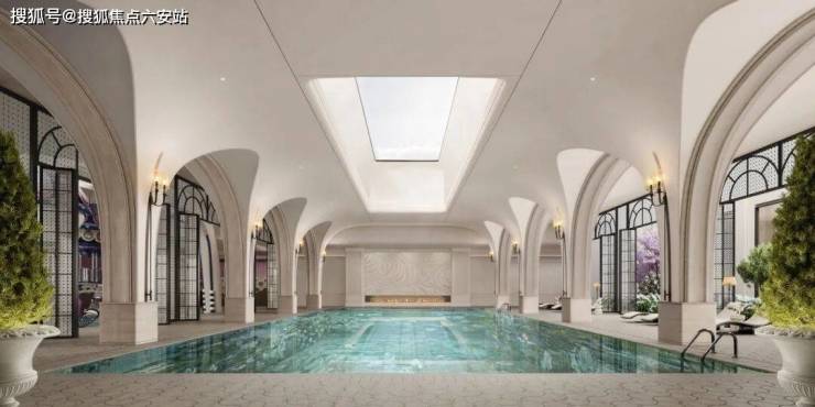 月恒宫:8.2米挑高恒温泳池(底部镶嵌莫奈《睡莲》马赛克);