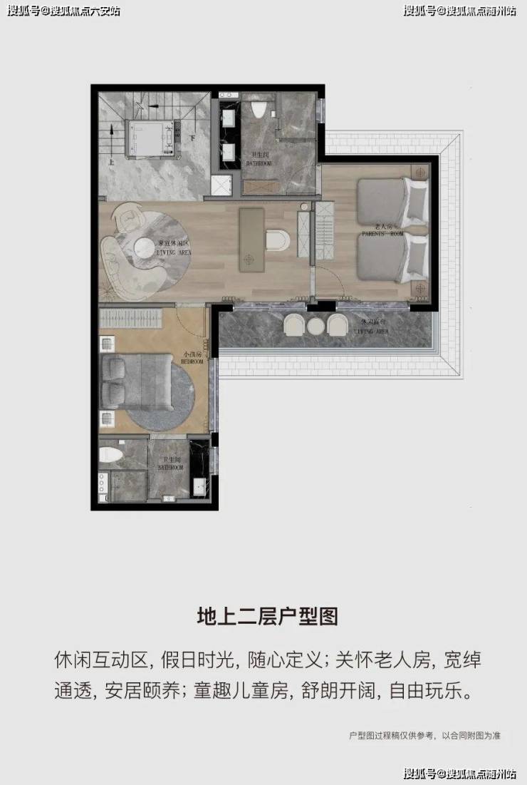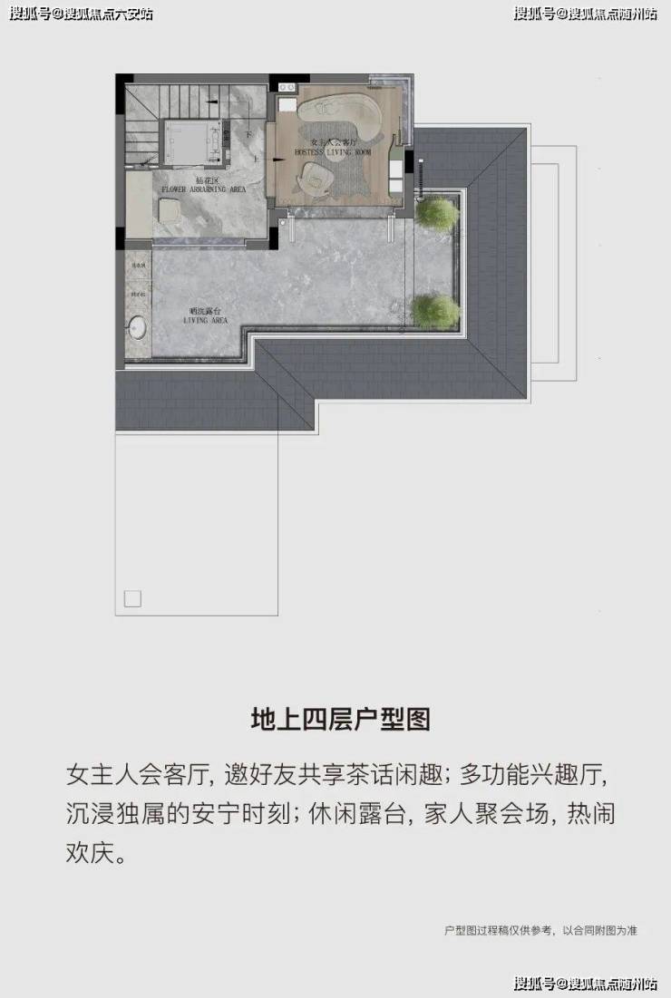 乐活层: 家庭厅、书房、次卧、阳光露台/庭院。