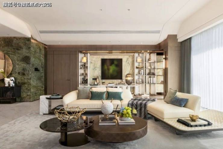 前湾归源大平层的设计,融合了现代与古典的美学理念,以高奢酒店的设计手法,呈现出更具公建感的立面。玻璃与铝板的巧妙结合,打造出错动的横向线条,远远看去波光粼粼,与钱塘江面的波光相映成趣。室内装修更是邀请了国际知名设计师团队亲自操刀,每一处细节都彰显着艺术品味和匠心独运。