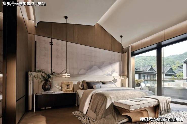 宋风美学与现代居住需求的完美结合是项目建筑的突出特点。项目对传统宋风进行了现代转译:以温润的米白色石材替代白墙,解决易脏问题;大面积落地窗引山光入室,改善采光;桃木色铝板重构古韵,兼得审美与耐久。在建筑形态上,玺园·香璋摒弃了“上天入地”的常规做法,而是在平面上尽情摊开,形成与自然山体和谐共生的建筑形态。