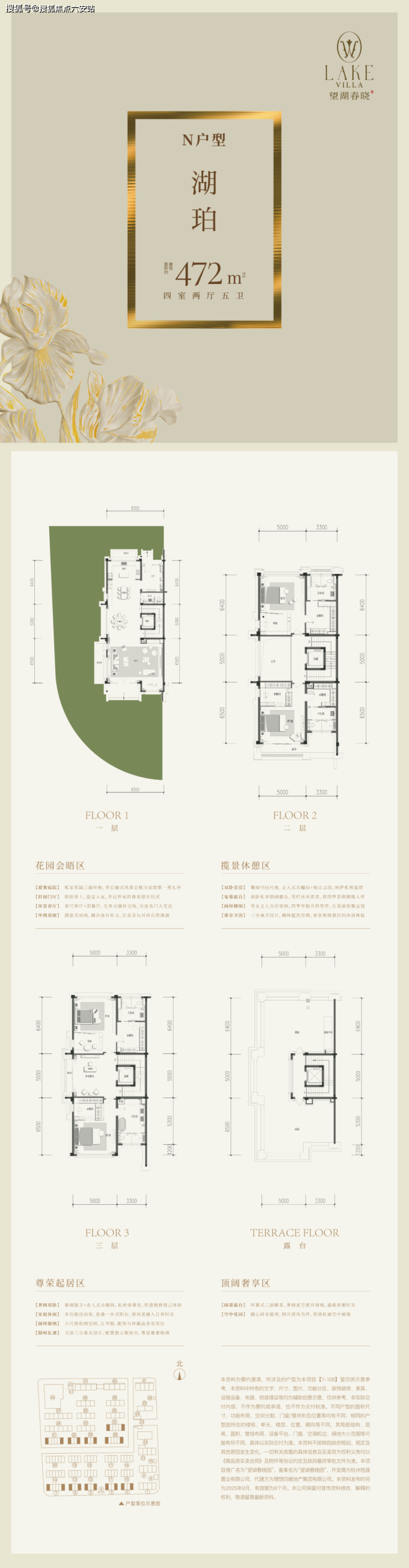 建筑面积约201-305㎡湖畔洋房 建面约437-483㎡法式排屋 建面约308-397㎡阔幕叠墅