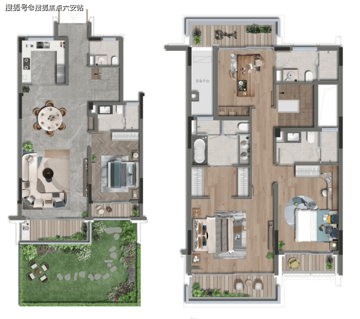 坡地联排:160-180㎡,地上双层设计,单层落地面积80-90㎡,全套房配置带独立卫浴露台,地下室层高5.8米可改造为收藏馆或家庭沙龙。