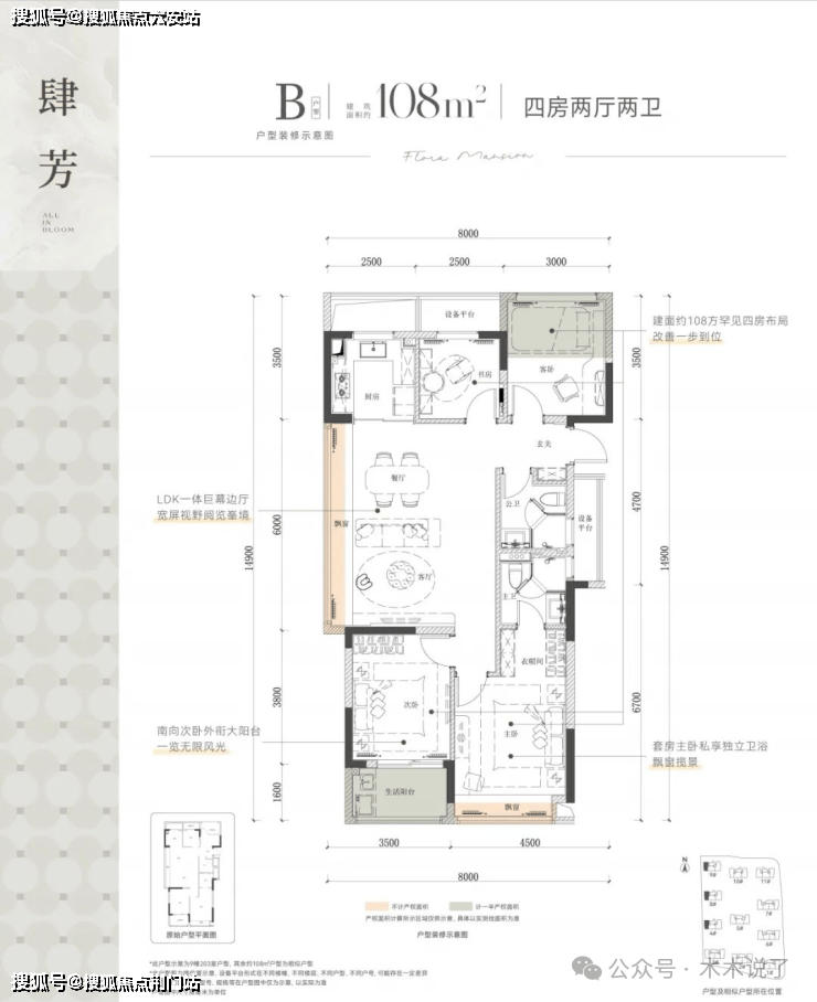 另一个是建面约 113方的南厅户型 ,做到了 四开间朝南,南向面宽达到了约12.8米, 宛若了打开了“IMAX全面屏”。