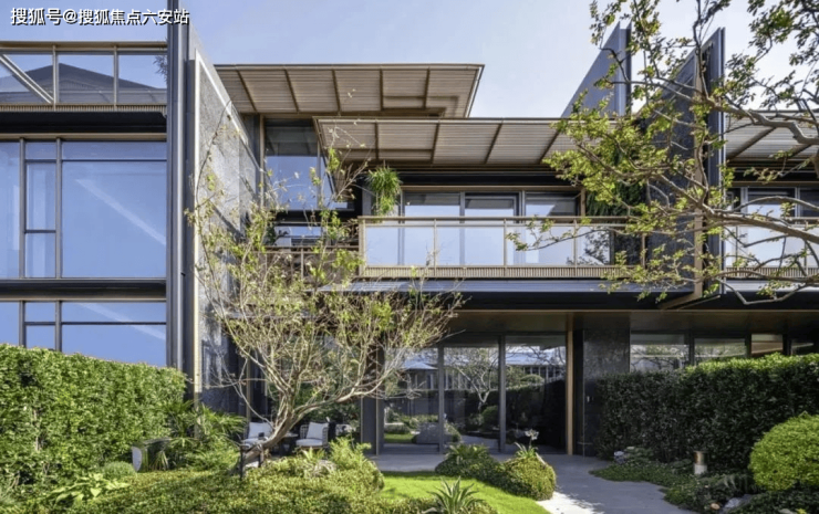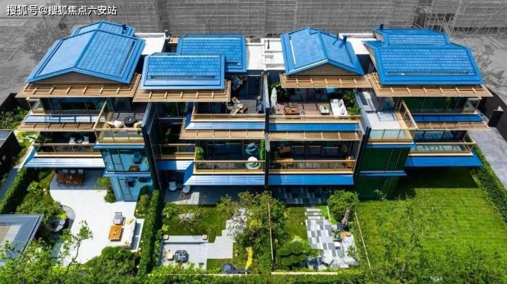 在东方屋檐和宋韵飞檐之上,融揉现代审美工艺,以卓越的窗墙比和大面积灰蓝玻璃,极简化打造光影天幕,倒映自然之境。同时,臻选靛蓝色的陶瓦,原创蓝金坡屋顶,掀起杭州合院立面的新序章。这种设计不仅保留了合院的私密性和围合感,还通过现代建筑手法的运用,让每一户都能享受到更多的自然光和通风。