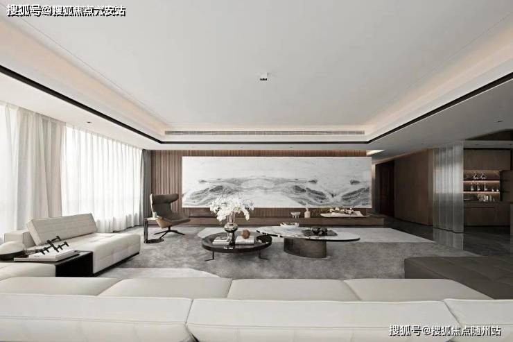 Classical340样板间以“社交优先”重构空间逻辑。传统300方户型常被切割为5-6个房间,而中天纪将约100方留给公共区域,形成22米南向开间的“社交长廊”。这种设计源于对塔尖人群生活方式的洞察:商务接待需要仪式感,家庭聚会渴望亲密性,独处时光则追求静谧感。