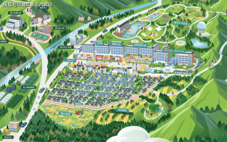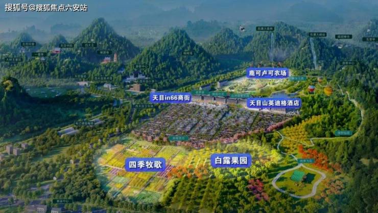 项目总占地900多亩,规划有英迪格酒店、天目in66商业街、自然探索乐园、耕心农场、自在果园、唐风合院、暖驿社区等复合功能配套,为业主提供丰富的生活场景和度假体验。
