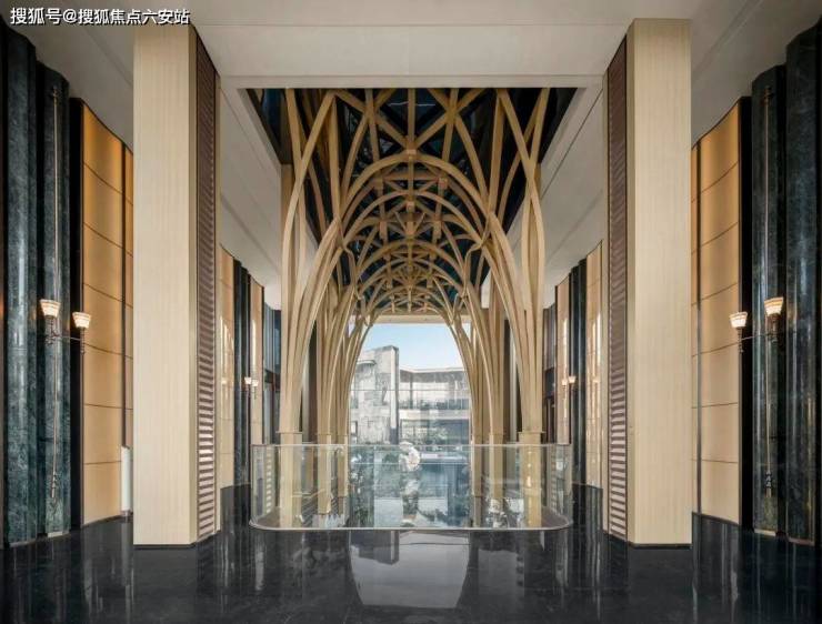 基于杭州曾经作为南宋古都的气候环境与文化底蕴,如玺华院选用相较石材颜色更加丰富、轻巧,且可防尘、防潮、降噪、自洁的环保天青陶板,经过20多道工序烧制、仅30%成品率的投入和挑战,将南宋官窑汝窑“雨过天青云破处”的温润质感复刻于外立面,打造出“会呼吸的墙体”;搭配紫点金麻石材与如意云纹镂空格栅铝板,更添尊贵雅致。